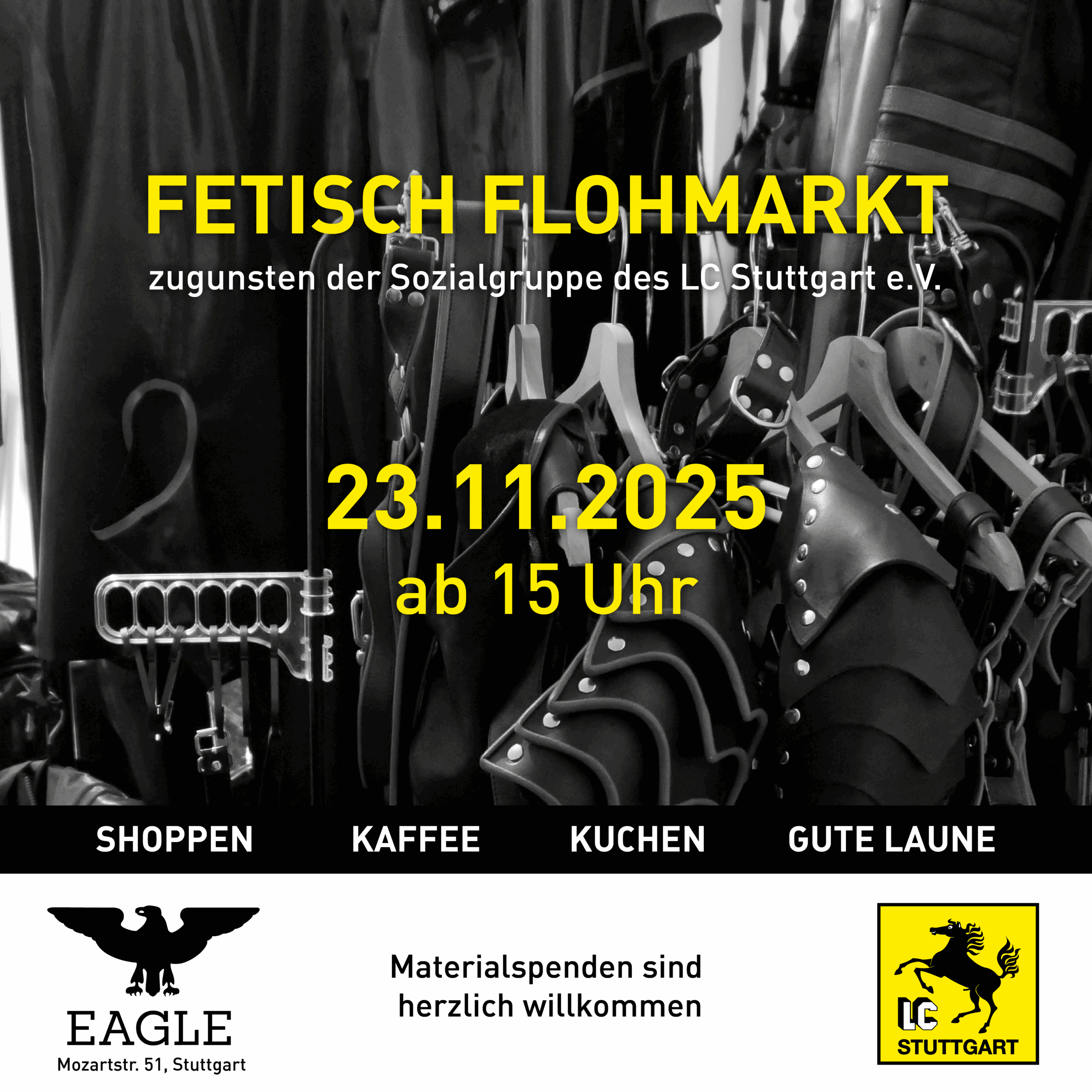 unser nächster Fetish Flohmarkt in unserem Clublokal EAGLE findet am 23.11.2025 um 15 Uhr statt.
